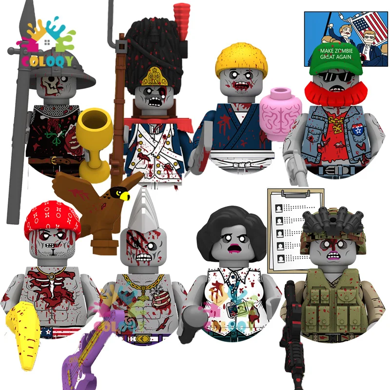 Kids Toys Halloween Zombies Building Blocks Line Infantry Judge Soldiers Mini Action Figures Toys For Kids Christmas Gifts