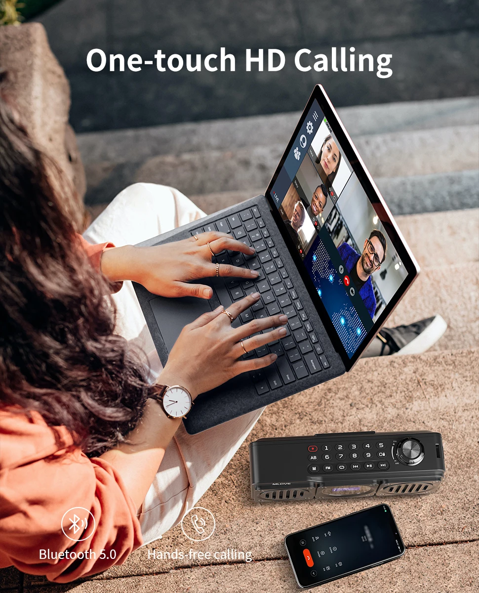 MLOVE BV810 Portable Bluetooth Speaker with FM Radio, Waterproof Speaker , LCD Screen Display, HD Free Call, Micro SD Card Slot